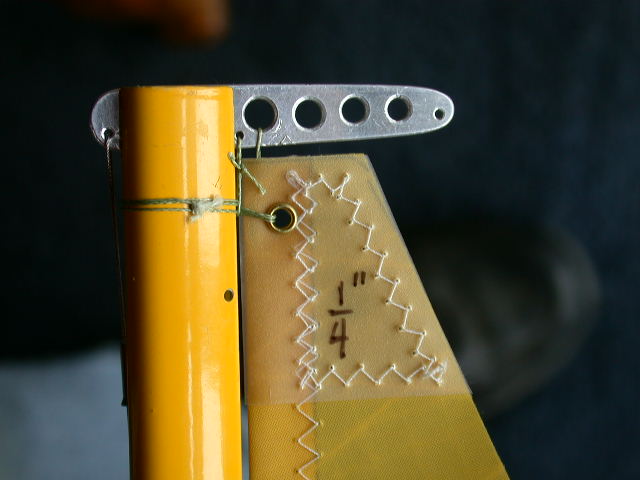 Some mainsail headboards are large and without some sort of fastening to the mast. In our model applications a sail can pivot away from the twist set by the vang. It is critical that this not happen, especially in light air. Hanging the head of the sail from the crane to a center top mounted grommet, by itself, will freeze the position of the head and it will not respond to twist adjustment that you would desire. Any secured grommet in the top center of the headboard will not twist without the luff moving away from the mast track. Therefore, twist is restricted and the luff moves into the airstream producing drag.
