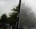 The jibstay connection is at 58-7/8" at the same level as the upper shroud wire mounts. The lower mount for the jumper wires is the same as the lower shrouds at 32 inches. The mount for the lower/lower shrouds is at 4-1/2 inches. All of these are centered on the leading edge of the mast. The jumper mount was installed so the spreader blade was at 52" above the deck with the #2 screws provided. Wire was threaded through the mast crane with equal ends at the lower attach point. The flared swage adjuster was then treaded up to the mast crane with the flared section down. The lower ends were threaded through a #2 Berkley swage then one end was passed through the port side of the mounting eyelet and the other through the starboard side. Both ends are now passed through the swage. The wire provided was around .012" and will pass through the #2 swage the four times needed.